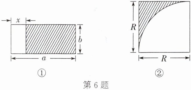 题图①:$ab-bx$ 题图②:$R^{2}-\frac{1}{4}\pi R^{2}$
