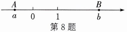 8. 如图,数轴上$A$,$B两点表示的数分别是a$,$b$,则化简$|b|-|a|$的结果是 (