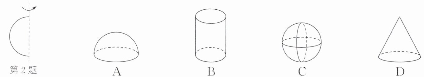 2. (2024·陕西)如图,将半圆绕直径所在的虚线旋转一周,得到的立体图形是 (