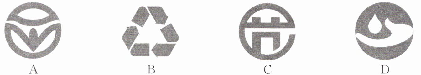 1. (新情境·环保意识)(2024·赤峰)在以下绿色食品、回收、节能、节水四个标志中,可以看成“沿某一条直线对折后,直线两旁的部分能够互相重合”的是 (