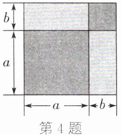 4. 根据如图所示的图形间的面积关系,在横线上填上适当的代数式,使等式成立:$(a + b)^2 = a^2 +$