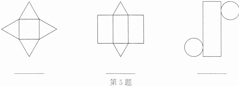 5. (2024·扬州改编)如图,下列图形分别是哪种立体图形的表面展开图? 请在横线上写出相应立体图形的名称。