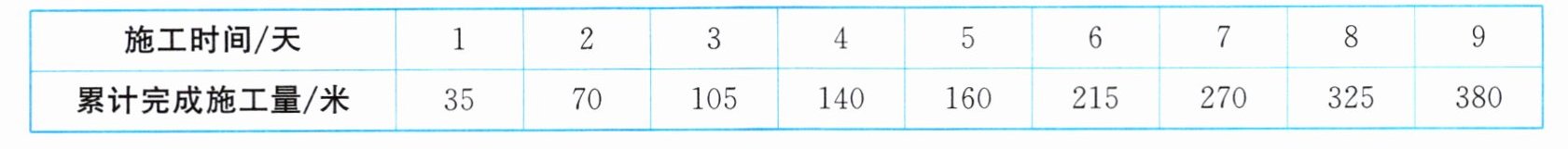 12. 甲、乙两个施工队分别从两端共同修一段长度为 380 米的公路.在施工过程中,乙队因技术改进而停工一天,之后加快了施工速度并与甲队共同按期完成了修路任务.下表是根据每天的工程进度绘制而成的.