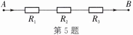5. (新考向·跨学科)(2024·广州)如图,把$R_{1},R_{2},R_{3}$三个电阻(单位:Ω)串联起来,线路$AB上的电流为I$A,电压为$U$V,则$U= IR_{1}+IR_{2}+IR_{3}$,当$R_{1}= 20.3,R_{2}= 31.9,R_{3}= 47.8,I= 2.2$时,$U$的值为