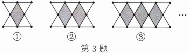 3. (2023·十堰改编)用火柴棍拼成如图所示的图案,其中第①个图案由4个小等边三角形围成1个涂色四边形,第②个图案由6个小等边三角形围成2个涂色四边形,…,若按此规律拼下去,则第20个图案需要