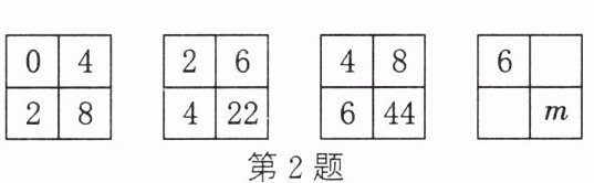 2. 在如图所示的各正方形中的四个数之间都有相同的规律,根据此规律,m的值是