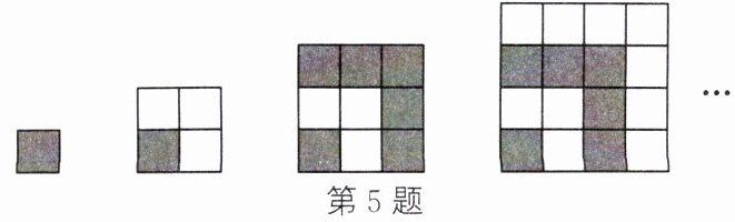 5. 用同样大小的两种不同颜色的小正方形按如图所示的方式拼成正方形.第90个图形中的小正方形比第89个图形中多(