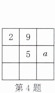 4. (新考向·传统文化)(2024·攀枝花)幻方,我国古代称为“河图”“洛书”,又叫“纵横图”.在如图所示的幻方中,每一行、每一列及各条对角线上的三个数之和均相等,则a的值为