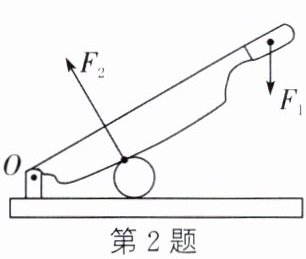 2. 如图所示为铡刀切甘蔗时的示意图,请在图中画出作用在铡刀上的动力$F_{1}和阻力F_{2}$的力臂。