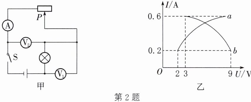 )A.曲线$a是电流表示数与电压表V_{2}$示数的关系图像