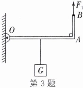 3. 如图所示,$OAB$是杠杆,$OA与BA$垂直,在$OA的中点挂一重为G$的物体,加在$B点的动力F_{1}$由竖直向上的位置沿逆时针方向转到水平向左的位置,动力$F_{1}$的大小变化情况是__
