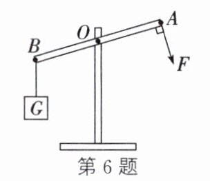 6. (2024·苏州姑苏校级段考)用如图所示的杠杆提升重物,如果作用在$A端的力F$始终垂直于杠杆,在将重物慢慢提升到一定高度的过程中(超过水平位置),力$F$的大小将 (