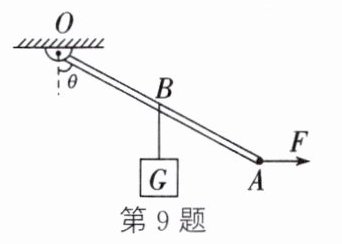 9. (2024·苏州姑苏段考)如图,用一个始终水平向右的力$F把杠杆OA$从图示位置缓慢拉至水平的过程中,力$F$的大小将 (
