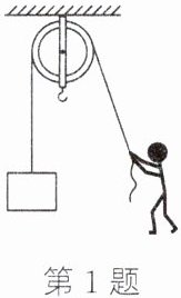 1. (2024·南通)如图,工人用$330N$的拉力,使用定滑轮将质量为$30kg的物体在6s内匀速吊起3m$,$g取10N/kg$。求: