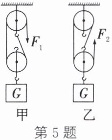 5. 如图所示,甲、乙都是由一个定滑轮和一个动滑轮组成的滑轮组,但是它们有不同点。