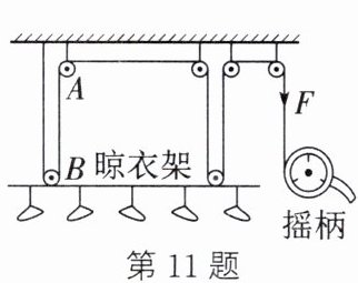 11. 如图所示为手摇晾衣架的示意图,A、B两滑轮中属于动滑轮的是