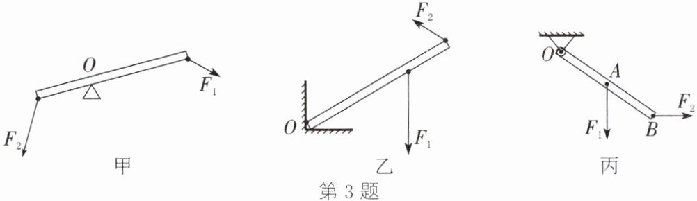 3. 作出下列图中各杠杆的动力臂$l_{1}与阻力臂l_{2}$。