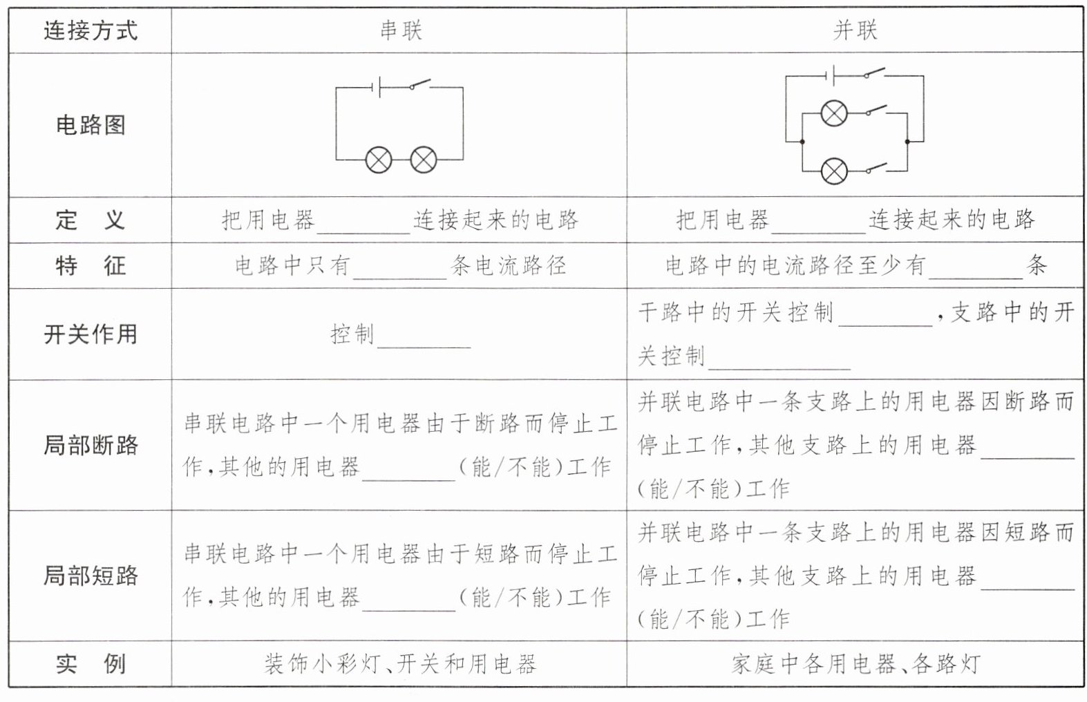 逐个顺次 并列地 一 两 整个电路 整个电路 其所在支路 不能 能 能 不能