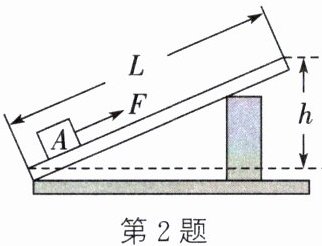 2. (2024·苏州吴江校级段考)如图所示,工人需把重600N的木箱A搬到高h= 2m,长L= 5m的斜面顶端。工人站在斜面顶端,沿斜面向上用时20s将木箱A匀速直线从斜面底端拉到斜面顶端,已知拉力F为320N。求: