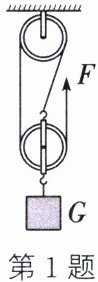 1. (2024·苏州高新区二模)将重为24N的重物用如图的滑轮组匀速提升3m,所用拉力F= 10N。不计轮与轴间的摩擦及绳重。求: