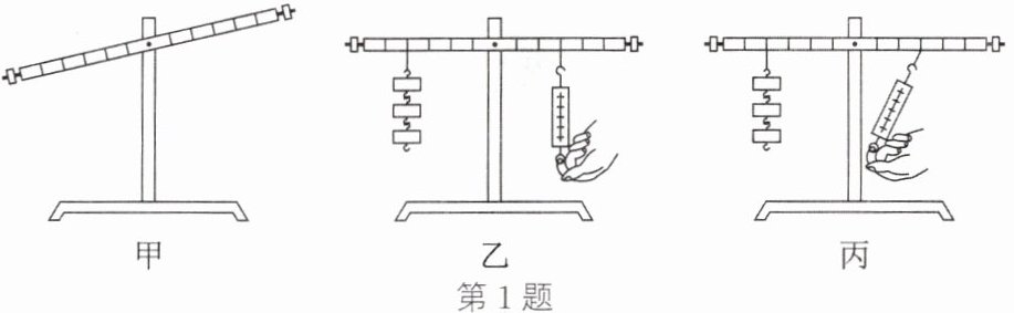 N。(3) 如图丙所示,当杠杆在水平位置平衡时,与图乙相比弹簧测力计示数将