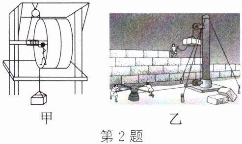 2. (2024·苏州期末)如图甲所示是欧洲中世纪使用的吊车,如图乙所示是我国古人使用的绞车。关于吊车与绞车的认识,下列说法错误的是(
