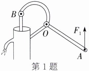 1. 如图所示,活塞式抽水机AOB部分可视为杠杆,O为支点,请画出作用在手柄A点的动力$F_{1}的动力臂l_{1}$和B点所受阻力$F_{2}$的示意图。