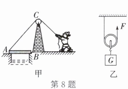 9. 同一个物体分别用图中甲、乙两个滑轮组吊着,则