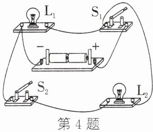 4. 关于如图所示的实物电路,在$S_{1}$、$S_{2}$都闭合后,下列说法正确的是 (