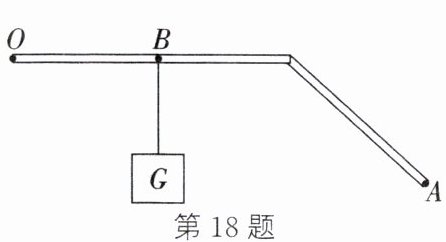 18. (2024·苏州昆山校级二模)如图,轻质杠杆OBA上挂一重物,请作出使杠杆静止时的最小力$F_{1}及杠杆所受的阻力F_{2}$的示意图。