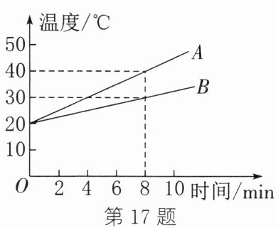 17.(2024·苏州昆山校级二模)为了比较A、B两种液体的吸热能力,小亮用完全相同的加热装置对质量分别为100g和480g的A、B两液体进行加热,根据实验数据绘制的温度随时间变化的图像如图所示。根据图像信息,下列说法中正确的是(