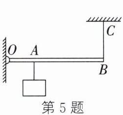 5. 如图所示,轻质均匀杆OB长70cm,能绕O点转动,B端用细绳BC悬于C点,有一重为49N的铁块挂在A点,OA长20cm。
