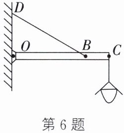 6. 如图所示,灯重为30N,灯挂在水平横杆的C端。O为杠杆的支点,水平横杆OC长为2m,杆重不计,BC长为0.5m,$∠DBO= 30^{\circ }$。