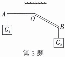 3. 如图所示,杠杆AOB用细线悬挂起来。当A端挂重物$G_{1}$,B端挂重物$G_{2}$时,杠杆平衡,此时OA恰好处于水平位置,$AO= BO$,杠杆重力不计,则(