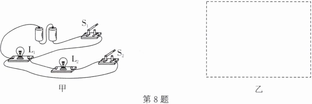 8. 根据如图甲所示的实物图,在如图乙所示的虚线框内画出电路图。