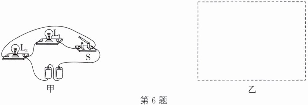 6. 根据如图甲所示的实物连接图,在如图乙所示的虚线框中画出与它对应的电路图。