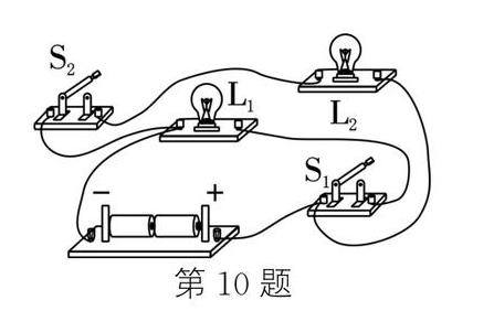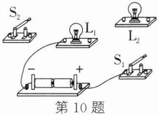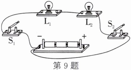 9. 用一根导线完成图中电路的实物连接。要求:两灯并联,$S_{1}$、$S_{2}分别控制L_{1}$、$L_{2}$。