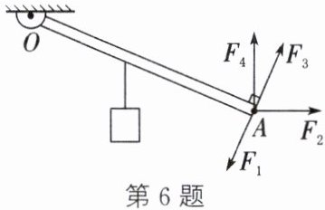 6. 如图所示,在A点分别作用的四个力中,不能使杠杆处于平衡状态的力是