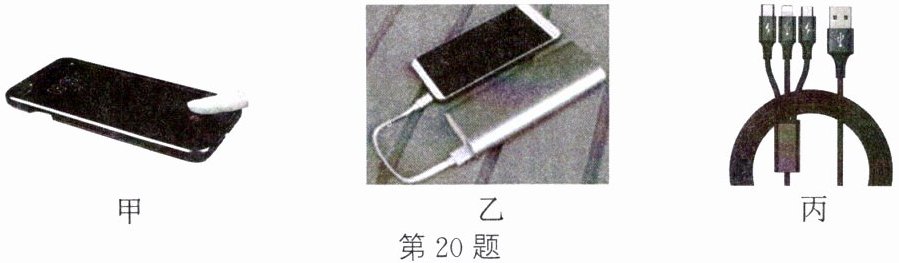 。(3)如图丙所示的手机充电线的三个插头可用于为三部不同类型的手机充电,如果三部手机同时充电,那么这三部手机的连接方式是
