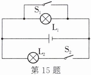 15. 如图所示的电路,当开关$S_1、$$S_2$均闭合时 (