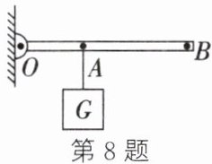 8. 如图所示,OAB为轻质杠杆,可绕支点O自由转动,在B处施加一个动力使杠杆在水平位置平衡,该杠杆(