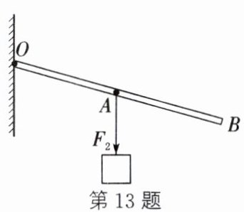 13. (2023·苏州)图中,用直棒提升重物,画出图示位置所用最小力$F_{1}和阻力F_{2}的力臂l_{2}$。