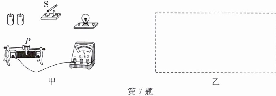 7. 如图甲所示为“滑动变阻器改变电路中的电流”的实验的电路。