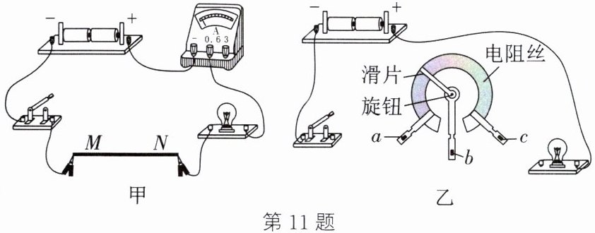 (2)由于铅笔芯易断,小洋在实验室找了一个电位器来替代铅笔芯,如图乙,为更好地实现电位器调节灯泡亮度的功能,电位器内的电阻丝应选用