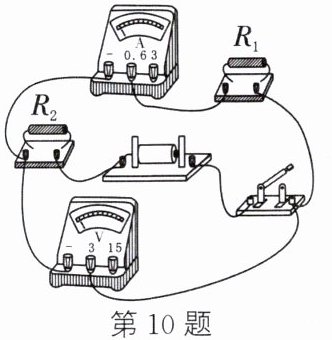 10. 如图,电路的电源电压为1.5V,电阻$R_{1}$的阻值为2Ω,闭合开关后,电流表的示数为0.3A,则 (