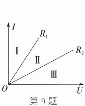 9. (2024·天津南开校级段考)阻值不同的两个电阻的电流随电压变化,$I-U$图像如图所示,从图中得到的下列结论中正确的是 (