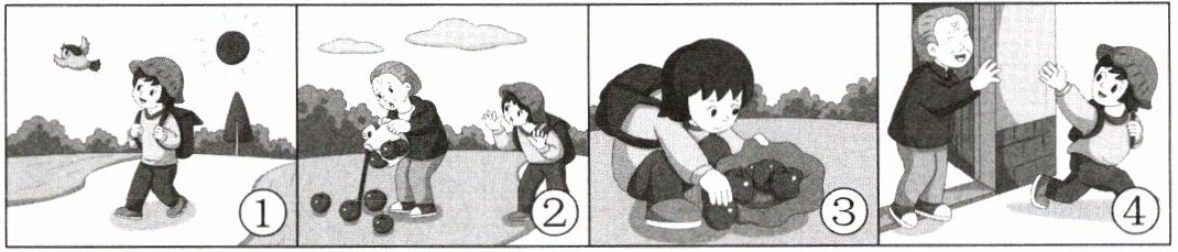 示例:一天上午,天气晴朗,小鸟在天空中快乐地飞着。小红背着包,戴着一顶漂亮的帽子,高高兴兴地走在路上。忽然,她听到一声叫喊,往旁边一看,原来是一位拄着拐杖、白发苍苍的老奶奶手中装苹果的袋子破了,苹果像顽皮的小孩钻出袋子,跑得满地都是。看到这,小红连忙跑过去,取下头上那顶帽子,对老奶奶说:“老奶奶,就让我的帽子当您的袋子吧!”还没等老奶奶反应过来,小红已经蹲下来把苹果一个一个地放进帽子。捡好苹果后,小红还把老奶奶送回了家。到家后,老奶奶在门口感谢小红。小红说:“老奶奶,这是我应该做的。再见!”说完,小红向老奶奶挥手告别,欢欢喜喜地往家跑去。