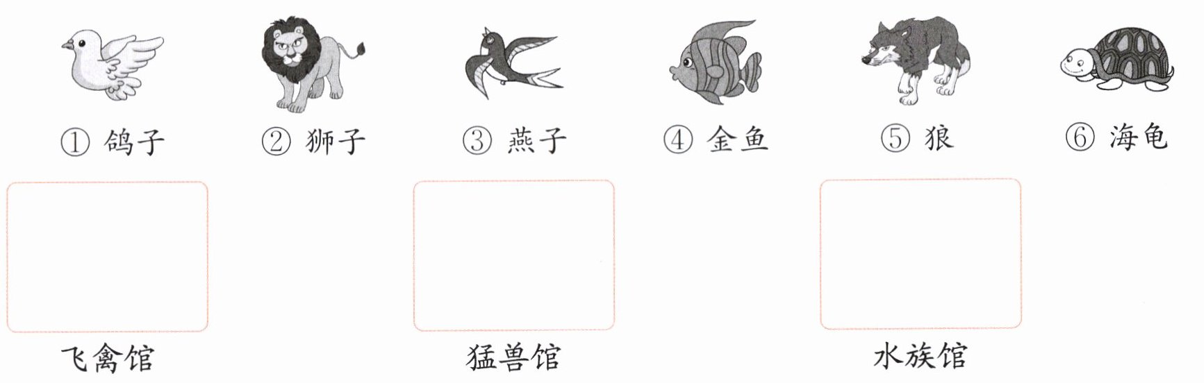 五、(新情境)为了方便动物园的管理,请把这些动物送回家。(填序号)(6 分)