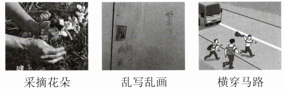3. 观察下面的图片,请你选择其中一幅,说一说他们错在哪里。假如你看到了这种情况,你会对他们说些什么呢?(10分)