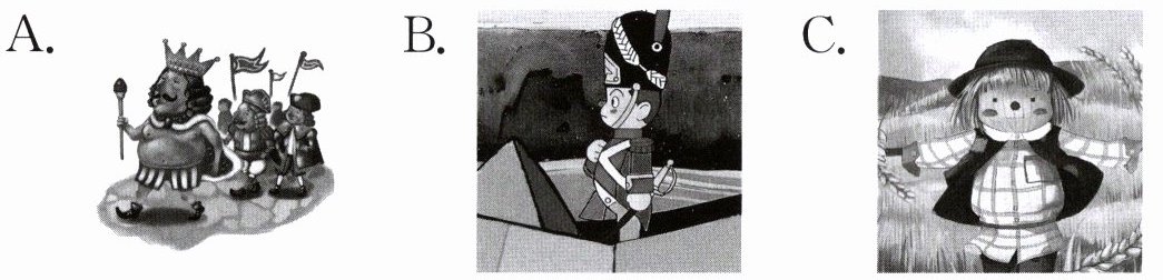 4. “好书我来讲”幻灯片上有这样一句简介:“一个单腿的锡兵在生活中战胜困难。”下列插图最恰当的一项是(3分)( )